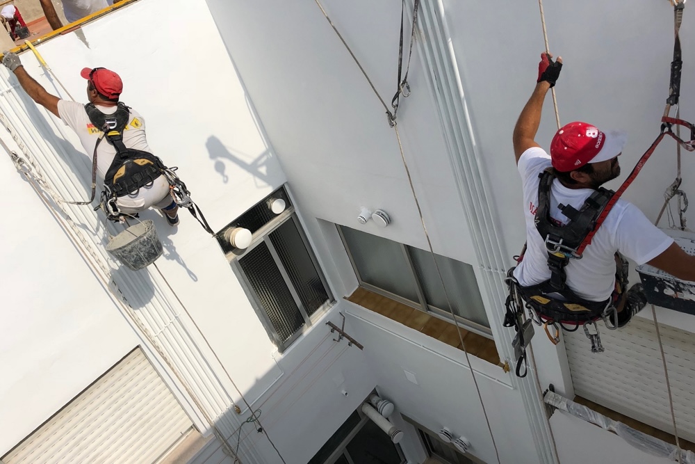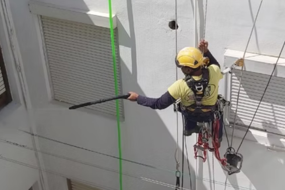 Empleamos sistemas de acceso por cuerda que nos permiten llegar a cualquier punto de difícil acceso sin necesidad de andamios ni estructuras auxiliares costosas. Esta metodología reduce tiempos de ejecución y minimiza las molestias para los usuarios del edificio.